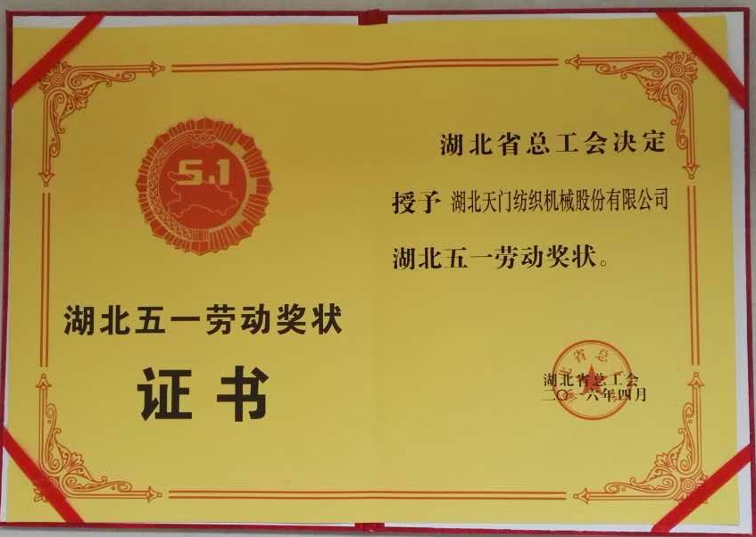 近日,公司傳來喜訊。4月28日在武漢東湖賓館召開的湖北省慶祝五一國際勞動(dòng)節(jié)暨表彰大會(huì)上,湖北天門紡織機(jī)械股份有限公司被省工會(huì)授予“五一勞動(dòng)獎(jiǎng)狀”,這是天門市本年度唯一上榜單位。