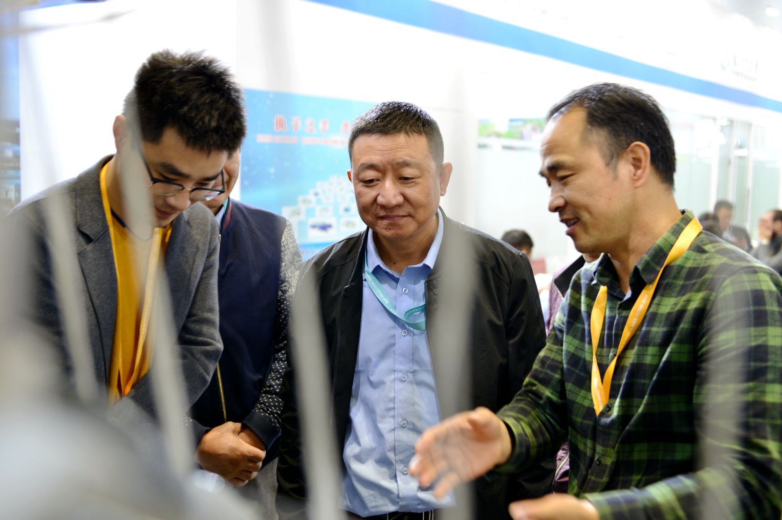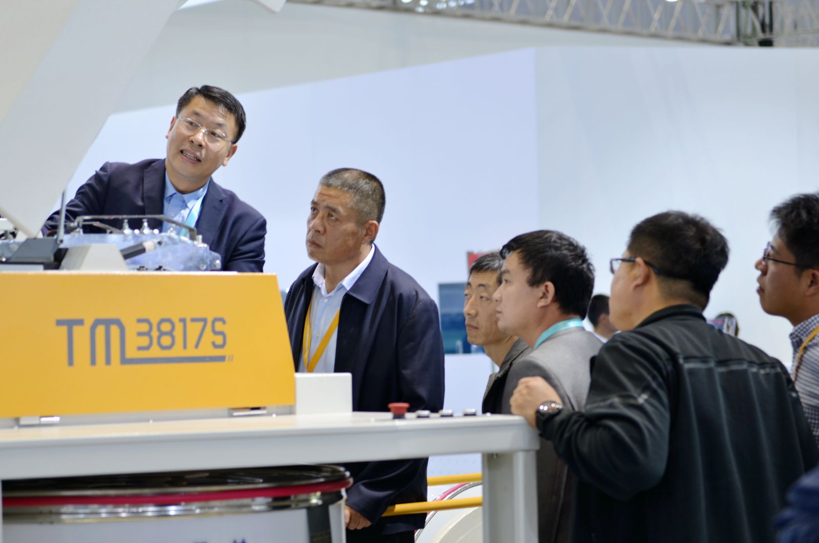 中國紡織機(jī)械協(xié)會(huì)副會(huì)長(zhǎng)、秘書長(zhǎng)徐林(右2),中國紡織機(jī)械協(xié)會(huì)總工程師祝憲民(左2)等領(lǐng)導(dǎo)在公司展位合影