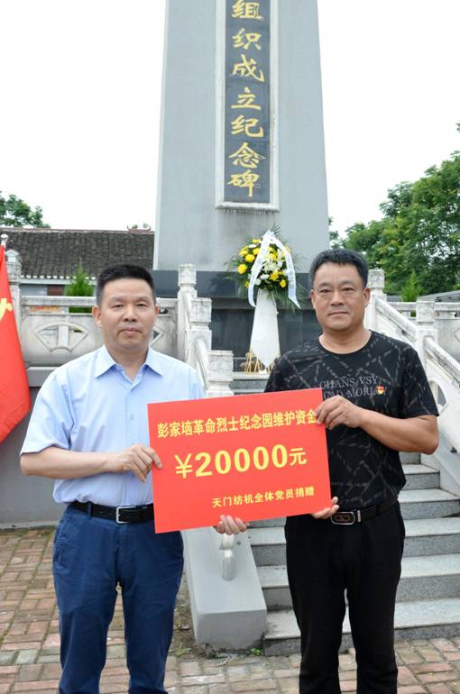 雨霽初晴,風(fēng)清氣爽。2019年6月29日下午,天門紡機(jī)50多名黨員和入黨積極分子,懷著崇高的敬意,來(lái)到位于天門盧市鎮(zhèn)彭家垴村的烈士紀(jì)念園舉行紀(jì)念中國(guó)共產(chǎn)黨成立九十八周年主題黨日活動(dòng)。盧市鎮(zhèn)委、鎮(zhèn)政府及彭家垴村黨支部主要負(fù)責(zé)人熱情接待并參加了活動(dòng)。
