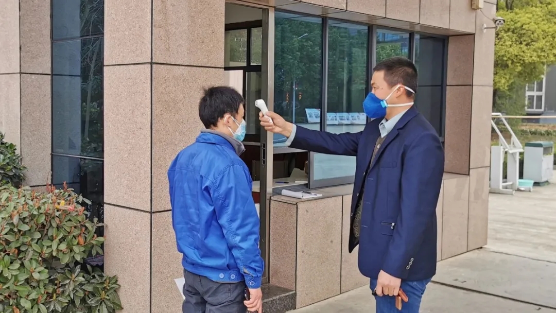 公司在大門設(shè)置了防控崗,對(duì)進(jìn)出人員做好消毒、體溫測量記錄等防護(hù)措施