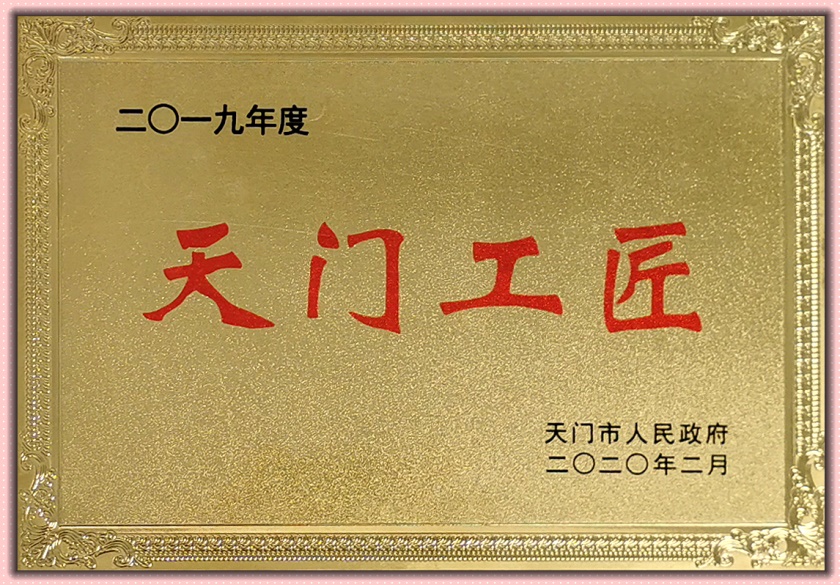 4月14日,天門紡機(jī)喜獲天門市人民政府頒發(fā)的兩塊金燦燦榮譽(yù)獎(jiǎng)牌,公司員工樊早兵、圣葉梅獲得“天門工匠”殊榮。