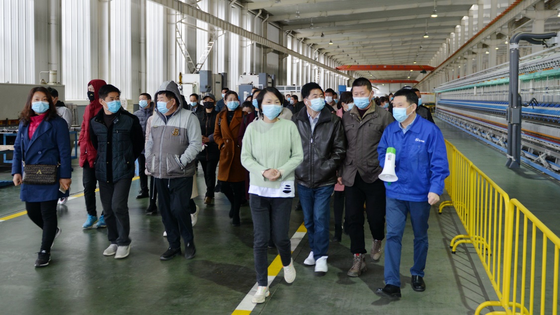 沈方勇董事長(zhǎng)帶領(lǐng)求職人員參觀生產(chǎn)現(xiàn)場(chǎng)。疫情期間,天門紡機(jī)兌現(xiàn)不給黨和政府添麻煩、不給疫情防控造壓力、不給社會(huì)就業(yè)增負(fù)擔(dān)的承諾,想方設(shè)法招賢納士擴(kuò)大就業(yè)。