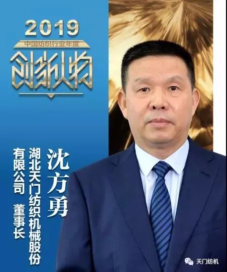 天門紡機(jī)董事長沈方勇作為“2019中國紡織行業(yè)年度創(chuàng)新人物”獲獎?wù)?,將于近期赴山西太原參加中國紡?lián)第四屆五次理事會,并接受表彰。