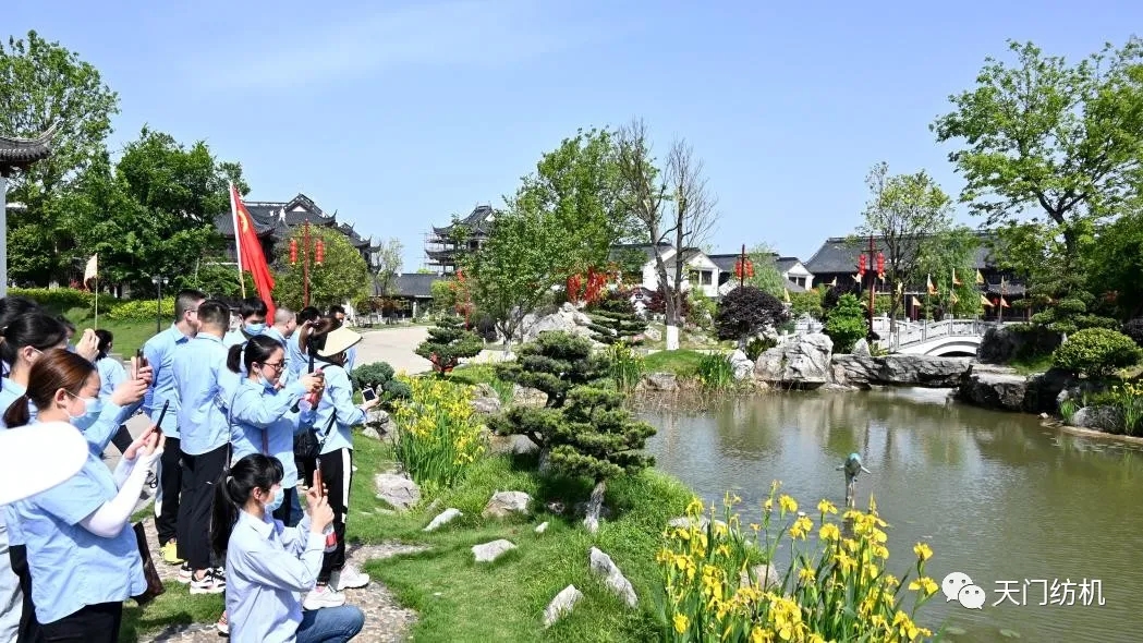 接著,青年團員乘車來到天門市海龍島游園。這是一座位于江漢平原的田園鄉(xiāng)村游園,映入眼簾的是別具一格的蘇州古典園林,水亭樓閣鱗次櫛比,湖光山色相互襯托,好一幅迷人的畫卷。在這里,青年團員舉行了詩歌朗誦比賽,借此抒發(fā)愛國情懷。參賽者一個個精神抖擻、慷慨激昂,臺下的觀眾聽得熱血沸騰、群情激昂。