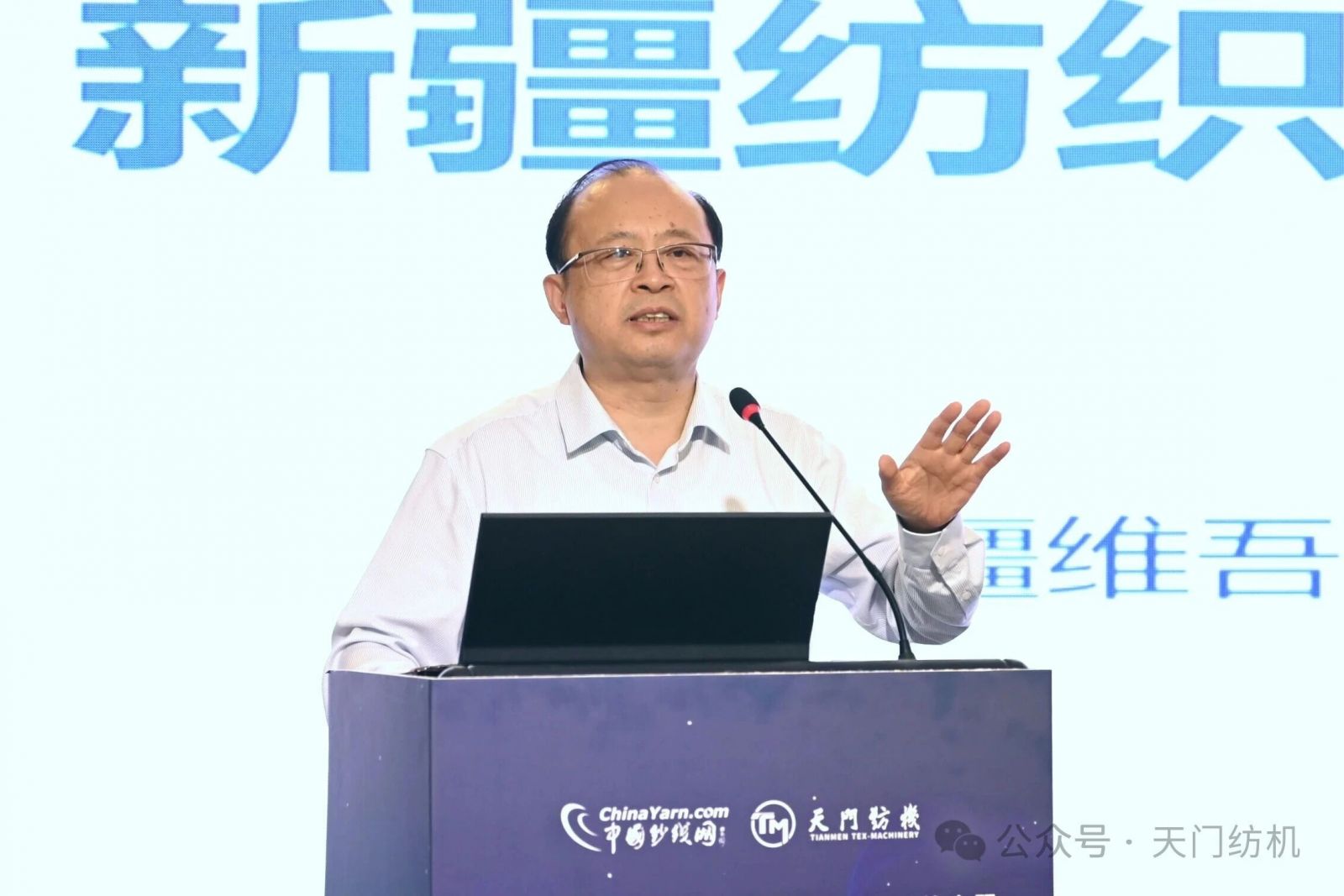 全國政協(xié)委員、新疆維吾爾自治區(qū)棉花產(chǎn)業(yè)發(fā)展領(lǐng)導(dǎo)小組辦公室主任梁勇對(duì)會(huì)議表示了祝賀,并在《新疆紡織服裝產(chǎn)業(yè)最新政策解讀》報(bào)告中闡述了“新九條”優(yōu)惠政策的設(shè)計(jì)思路與依據(jù),明確了行業(yè)發(fā)展戰(zhàn)略。他指出,新疆發(fā)展紡織產(chǎn)業(yè)具備眾多優(yōu)勢,是大勢所趨。他強(qiáng)調(diào),當(dāng)前新疆紡織正處于加速增長階段,市場競爭也會(huì)更加激烈,但是,一定要理性對(duì)待競爭,堅(jiān)決抵制“內(nèi)卷”。